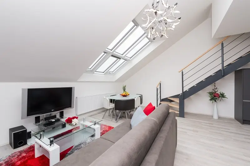 This bright and sunny air-conditioned duplex with soaring ceilings was newly reconstructed in 2016. The apartment is located on the 6th and 7th floor of a historic brick apartment building completely reconstructed in 2016 including new elevator.